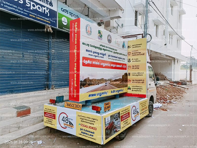 At Ads Spark, we bring your brand to life with powerful Mobile Van Advertising in Trichy. Turn every road into a marketing opportunity with our moving advertisements designed to attract attention and generate strong brand visibility. Mobile van branding is one of the most effective outdoor advertising methods to reach your target audience directly. Our goal is simple — to help you attract more customers and make your brand stand out on the road.